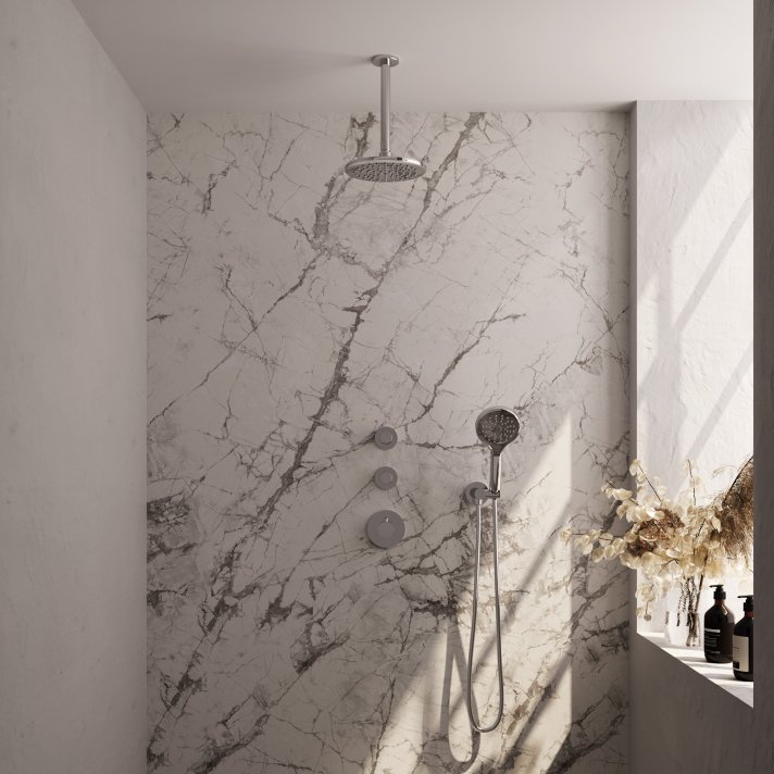 BRAUER Chrome Carving thermostatische inbouw regendouche SET 11 met 20 cm douchekop en plafondarm en 3-standen handdouche en doucheslang en wandaansluitbocht chroom