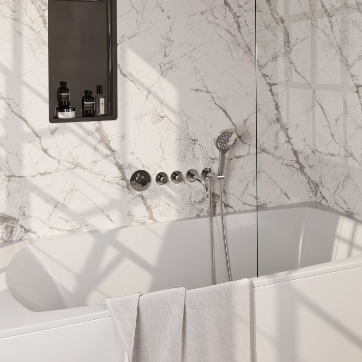 De BRAUER Chrome Edition thermostatische inbouw badkraan SET 02 is een ware blikvanger met zijn stijlvolle en moderne ontwerp. De kraan is uitgevoerd in een prachtige chroomafwerking die niet alleen een verfijnde uitstraling aan uw badkamer geeft, maar ook naadloos past bij diverse badkamerstijlen, van minimalistisch tot klassiek. De strakke lijnen en de glanzende afwerking zorgen voor een tijdloze esthetiek waardoor uw badkamer een luxe en verfijnde uitstraling krijgt. Bovendien zorgt de chromen uitvoering ervoor dat de kraan eenvoudig te combineren is met andere elementen en accessoires in de badkamer, waardoor een harmonieuze en samenhangende sfeer ontstaat.