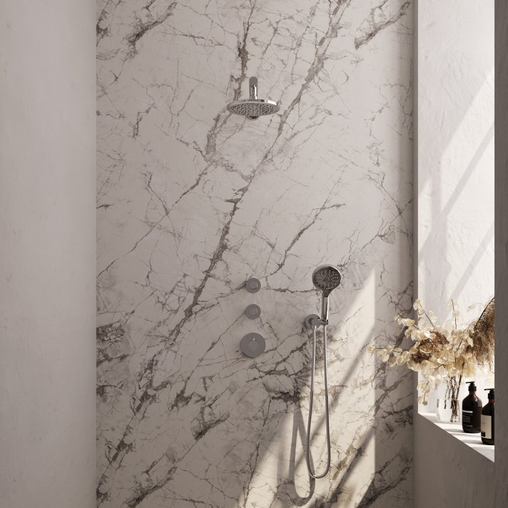 BRAUER Chrome Edition thermostatische inbouw regendouche SET 07 met 20 cm douchekop en rechte muurarm en 3-standen handdouche en doucheslang en wandaansluitbocht chroom