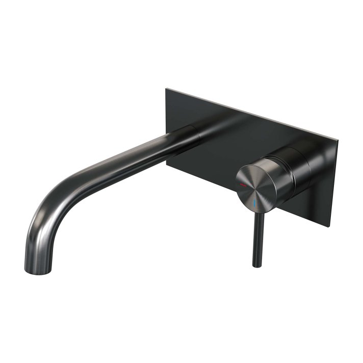 De BRAUER Gunmetal Edition inbouw wastafelmengkraan met gebogen uitloop en afdekplaat is een hoogstandje in modern ontwerp en functionaliteit. Met zijn elegante gunmetal geborstelde PVD-afwerking straalt deze kraan een subtiele luxe uit die perfect integreert in zowel minimalistische als klassieke badkamerstijlen. De verfijnde ronde vormen en de strategisch geplaatste afdekplaat zorgen voor een naadloze look die elke wastafel transformeert tot een stijlstatement. Deze kraan past niet alleen visueel in diverse interieurs, maar biedt ook veelzijdigheid dankzij de tijdloze kleur en gepolijste afwerking.