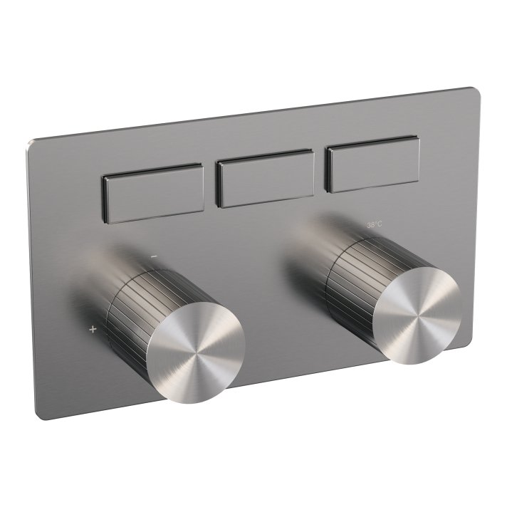 BRAUER Stripe 3-weg inbouwthermostaat met drukknoppen met in- en afbouwdelen RVS-kleurig geborsteld PVD