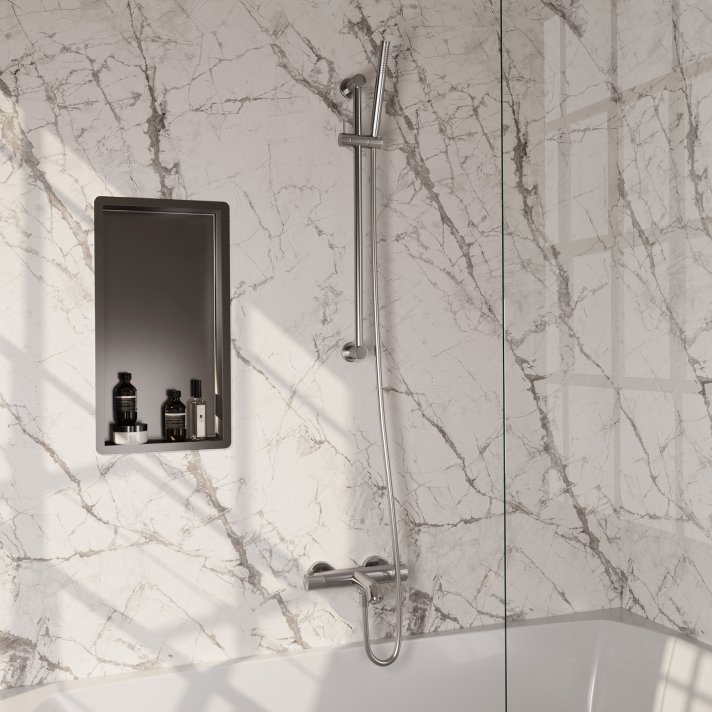 BRAUER Stripe opbouw baddouche thermostaatkraan SET 01 met glijstang en staaf handdouche en doucheslang RVS-kleurig geborsteld PVD