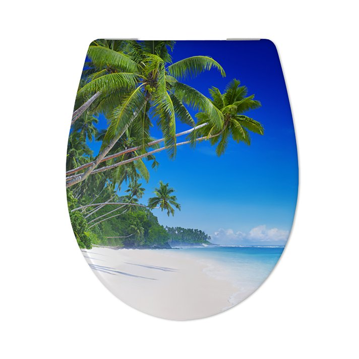 Cedo Tropical Toiletzitting/siège wc Multi Waar kan je beter even wegdromen dan op het kleinste kamertje? Deze Cedo Tropical wc-bril neemt je mee naar een prachtig afgelegen zandstrand, maar dat is lang niet alles. De wc-bril is gemaakt van duroplast, hierdoor is hij krasvast en nagenoeg onbreekbaar ,waardoor je er jarenlang plezier van hebt en door het gladde oppervlak is hij ook makkelijk schoon te houden. De speciale soft-close scharnieren zorgen ervoor dat de bril en deksel altijd zachtjes en geruisloos dichtvallen en voorkomen dat de keramische toiletpot beschadigd raakt. Daarnaast is de wc-bril door het ingebouwde 'Take off' systeem met een eenvoudige beweging los te klikken ,waardoor ieder lastig hoekje eenvoudig schoon te maken is. Erg handig dus. Door de verstelbaarheid in de scharnieren en de ovale vorm past de bril op de meeste gangbare toiletpotten, toch raden we je aan de lijntekening goed te bekijken zodat hij netjes past op jouw pot. Tenslotte monteer je de bril met het doordachte 'Fastfix' bevestigingssysteem eenvoudig vanaf de onderkant. Omdat we duurzaamheid belangrijk vinden, wordt de wc-bril in Europa geproduceerd ,waardoor we de transportketen kort houden en zo bijdragen aan een beter milieu en je een hoogwaardig product met een lange levensduur garanderen. Kortom, met deze Cedo wc-bril zit je goed.