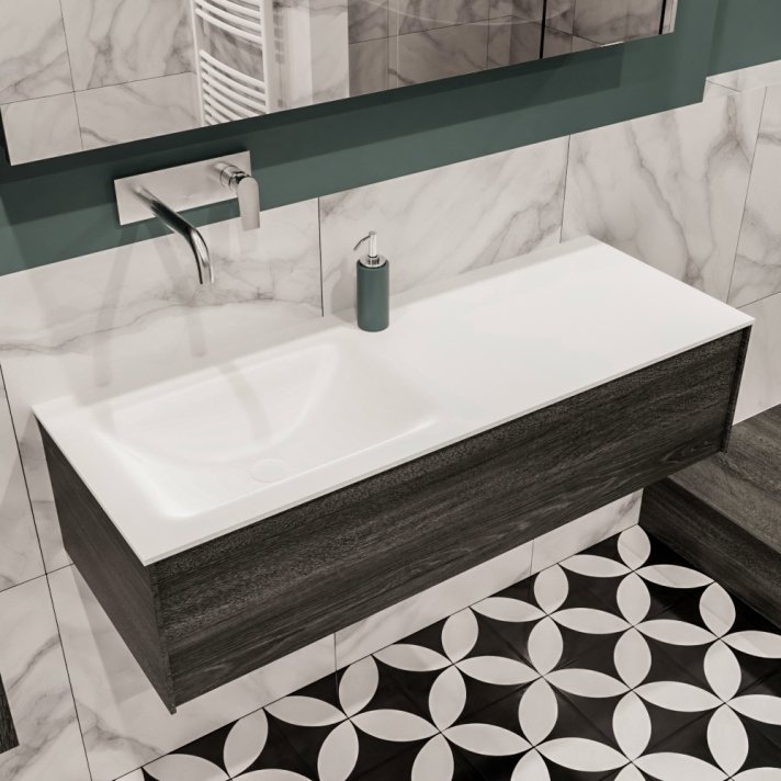 Mondiaz Lush 120 badmeubel antracite 1 lade wastafel Cloud links geen kraangat