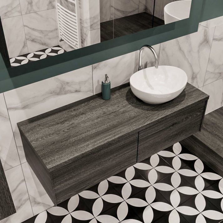 Mondiaz Lush 120 badmeubel antracite 2 lades wastafel Barco rechts 1 kraangat