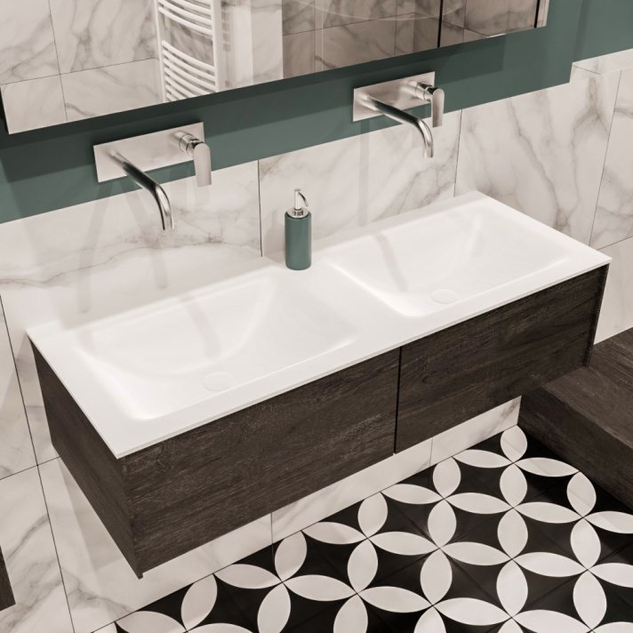 Mondiaz Lush 120 badmeubel dark brown 2 lades wastafel dubbel geen kraangat