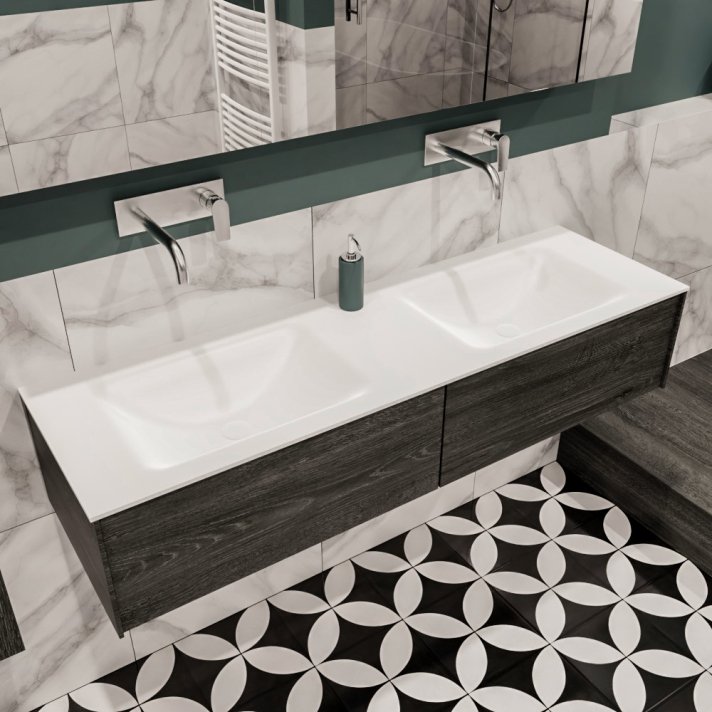 Mondiaz Lush 150 badmeubel antracite 2 lades wastafel dubbel geen kraangat