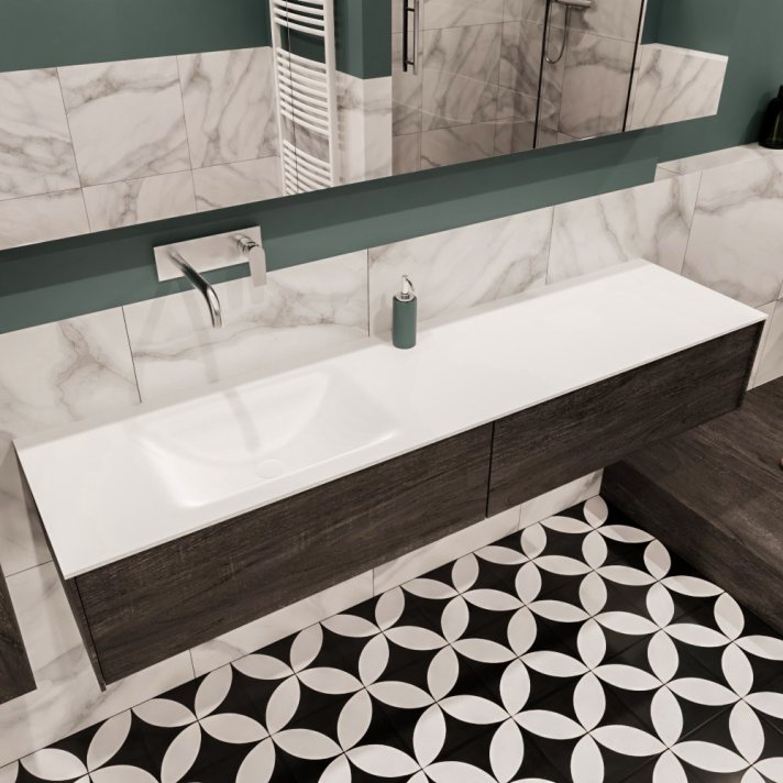 Mondiaz Lush 180 badmeubel dark brown 2 lades wastafel links geen kraangat