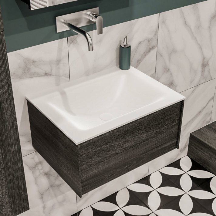 Mondiaz Lush 60 badmeubel antracite 1 lade wastafel Cloud midden geen kraangat