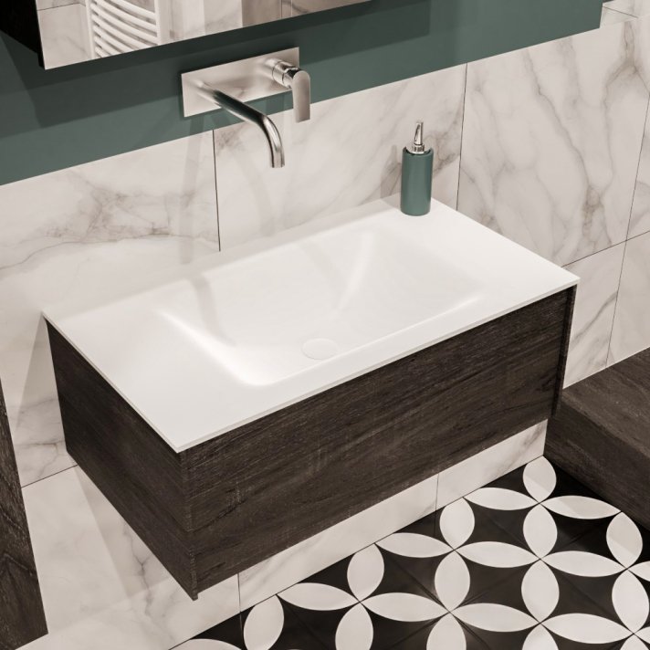 Mondiaz Lush 80 badmeubel dark brown 1 lade wastafel midden geen kraangat