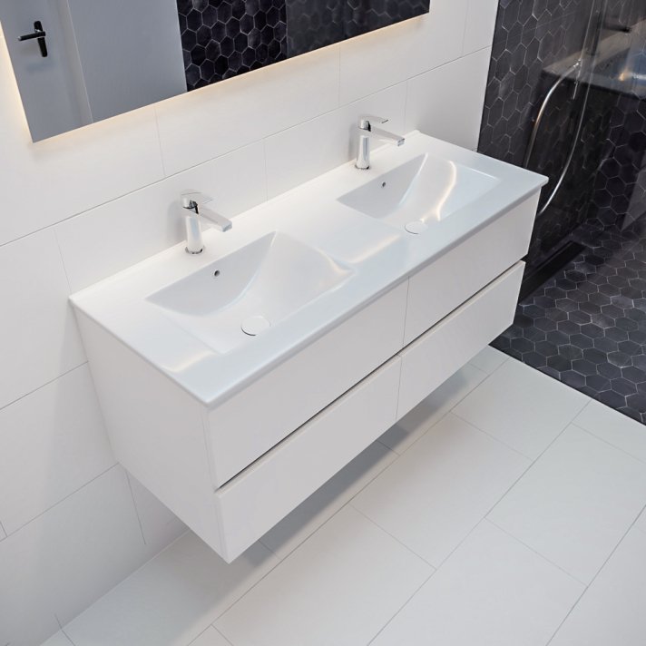 Mondiaz Vica 120 badmeubel talc 4 lades wastafel DENIA dubbel met 2 kraangaten