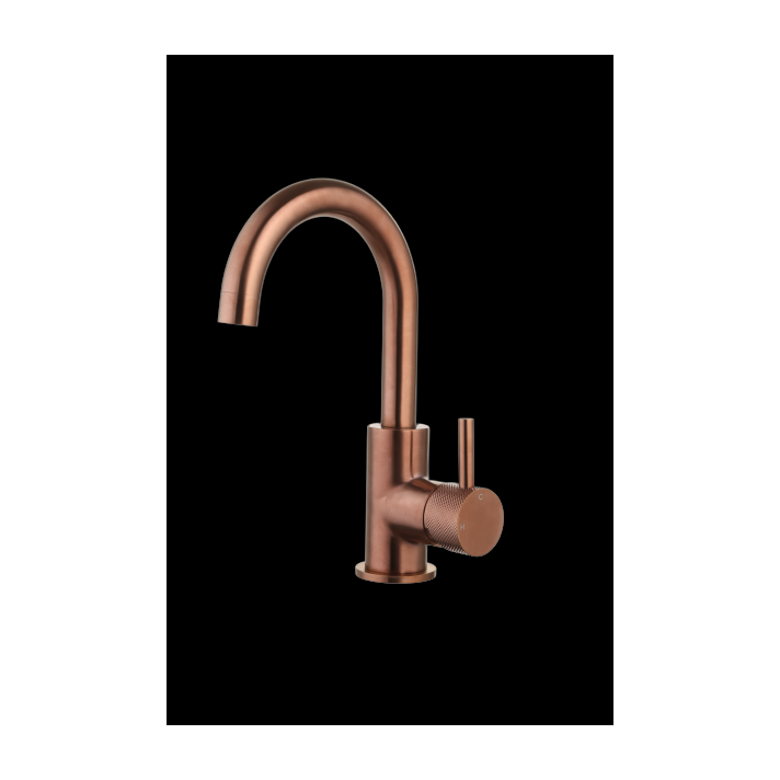 Sani DeLuxe Wastafelmengkraan opbouw Largo met draaibare uitloop Brons met geribbeld knop